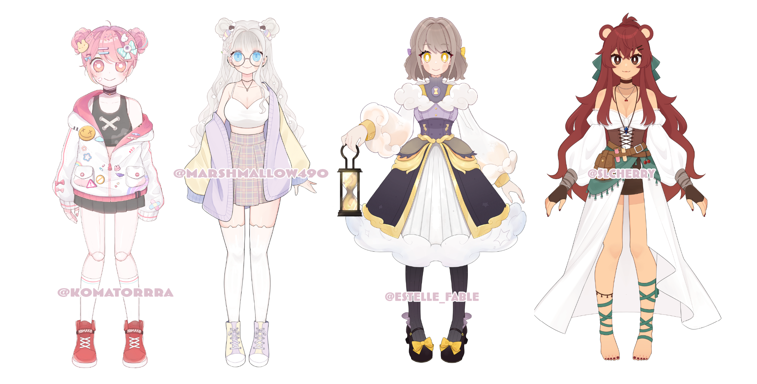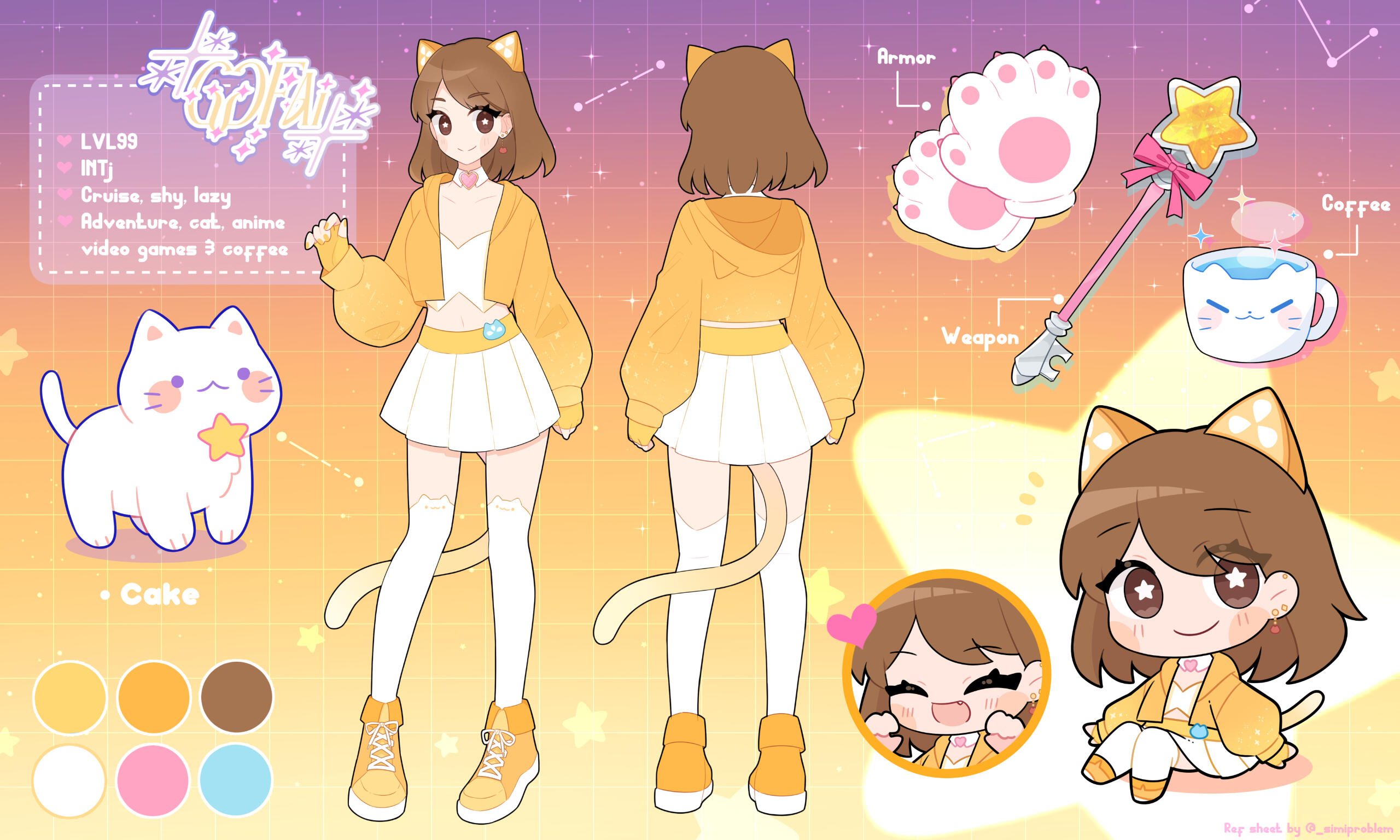 ✦Fullbody (front & back), 3 detail shots, 1 bust-up shot or chibi fullbody, Character theme background, Color palette, Name and character infos (can be added more for free)Add-ons ໒꒱